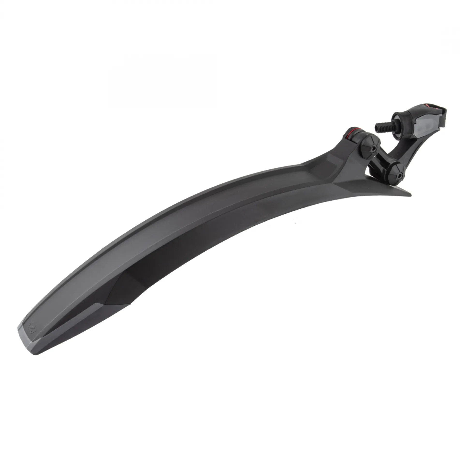 Seat post mounted fender with two points of articulation.